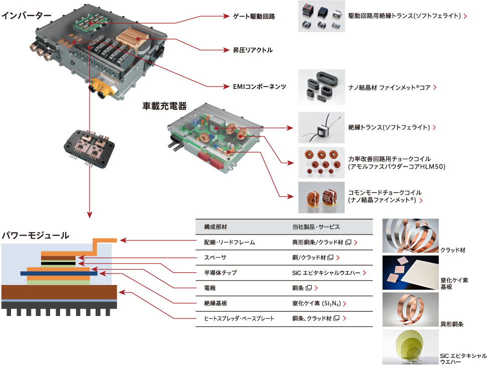 プロテリアルの技術は、パワーモジュールの高集積化や熱マネージメントに貢献しています。