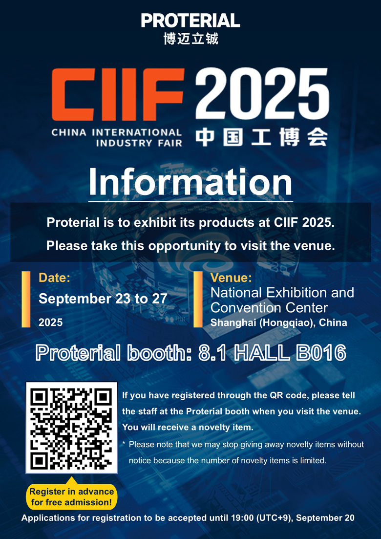 Proterial (China), Ltd. (Shanghai, China; hereafter, "Proterial"), a local Chinese subsidiary of Proterial, Ltd., will exhibit its products at the 25th China International Industry Fair (CIIF 2025) that will be held in Shanghai, China from September 23 to September 27, 2025. Proterial booth (8.1 HALL B016) will showcase high-function materials in a broad range of fields, such as the robotics, automotive, and semiconductor sectors.